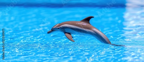 Fototapeta premium A dolphin leaps gracefully above the crystal-clear water, showcasing its...