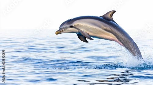 Fototapeta premium A dolphin leaps gracefully above the ocean surface, showcasing its sleek body...