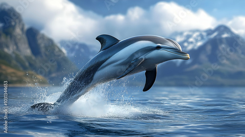 Fototapeta premium A dolphin leaps gracefully above the water's surface.