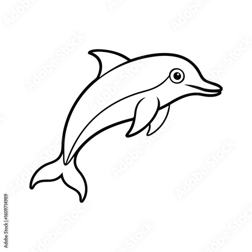 Fototapeta premium A dolphin line art silhouette vector illustration on white background