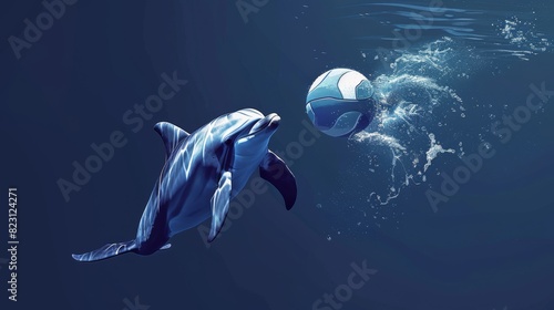 Fototapeta premium A dolphin playing with a ball in the ocean.