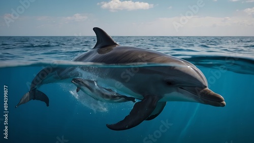 © Oleksandr, Fototapeta premium A dolphin soaring high above the sea waves with grace