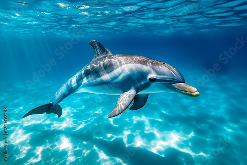 Fototapeta premium A dolphin swimming in the ocean with its mouth open
