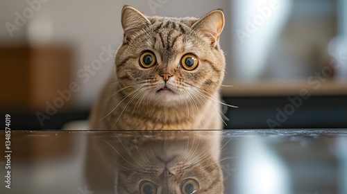 © novri, Naklejka premium A domestic cat looks with wide eyes at the camera