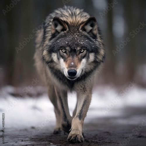 Fototapeta premium A dominant alpha wolf, showcasing its powerful rule and unstoppable dignity created with Generative Ai