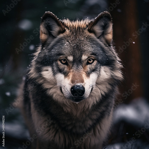 Fototapeta premium A dominant alpha wolf, showcasing its powerful rule and unstoppable dignity created with Generative Ai
