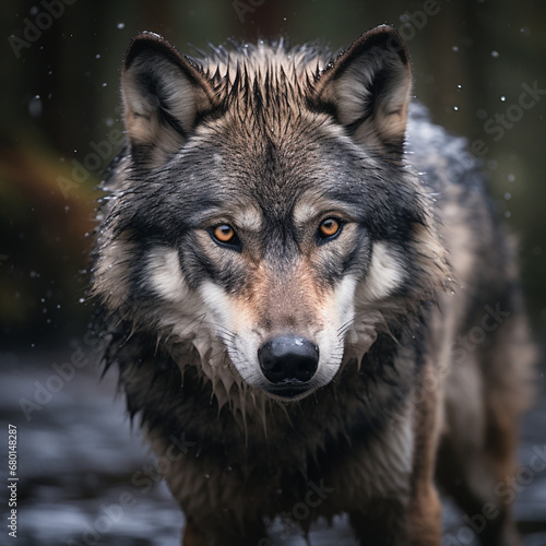 Fototapeta premium A dominant alpha wolf, showcasing its powerful rule and unstoppable dignity...