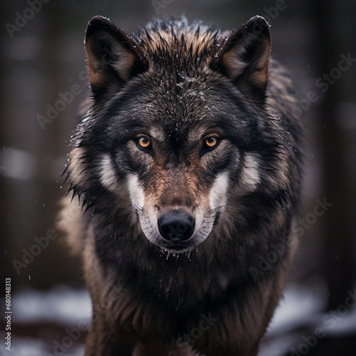 © Andrii Yablonskyi, Fototapeta premium A dominant alpha wolf, showcasing its powerful rule and unstoppable dignity created with Generative Ai