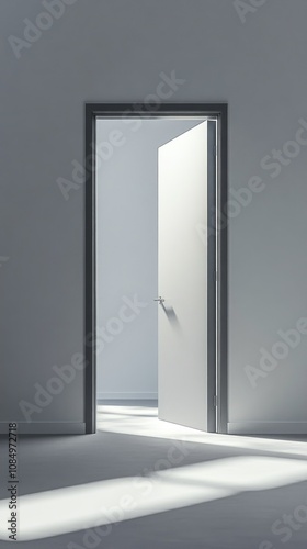 © liliyabatyrova, Naklejka premium A door is open in a room with a white wall