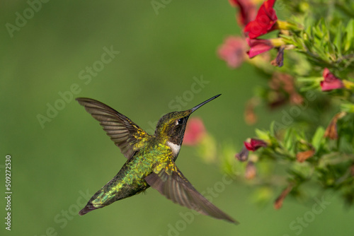 © mattcuda, Fototapeta premium A dorsal view of a ruby-throated hummingbird