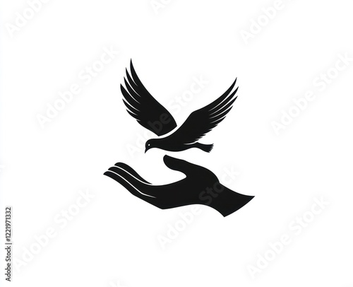 Fototapeta premium A Dove Landing Gently In A Helping Hand