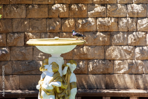 Obraz premium a dove sitting on a bowl of an old Soviet fountain