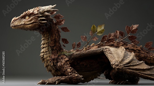 © Veraa, Obraz premium A dragon with tree bark for scales and leaves growing along its spine