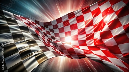 Obraz premium A Dramatic Checkered Flag Unfurling in a Radiant Light Burst, Symbolizing...