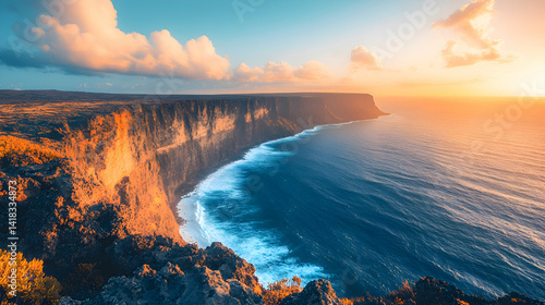 © Muhammad, Fototapeta premium A dramatic cliffside view of the ocean, with waves crashing against the rugged rocks below