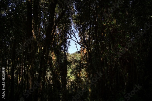 Obraz premium A dramatic entrance to a thick, ancient cloud forest.