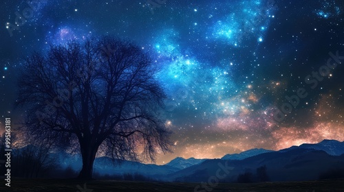 Fototapeta premium A dramatic night sky filled with stars over a tranquil landscape