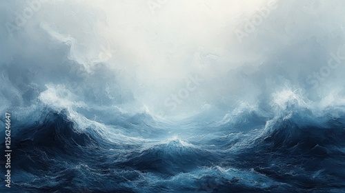 Fototapeta premium A dramatic ocean scene with turbulent waves and moody clouds.
