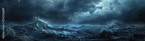 © charoensuk, Fototapeta premium A dramatic rendering of a powerful tiger stalking through a lush