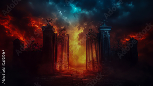 Fototapeta premium A dramatic representation of the contrasting gates of Heaven and Hell