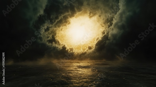 Obraz premium A dramatic seascape featuring dark, ominous storm clouds filling the sky,