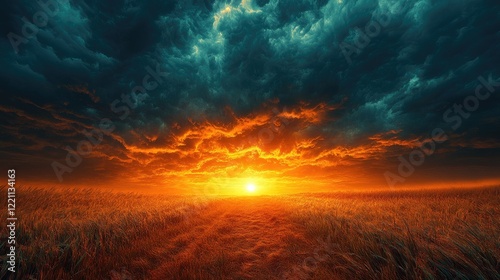 © MST, Obraz premium A dramatic seascape featuring dark, ominous storm clouds filling the sky,