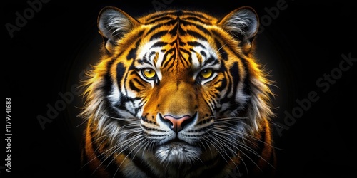 © ChannelPIC, Fototapeta premium A dramatic silhouette tiger tattoo in dark ink; a powerful animal portrait.