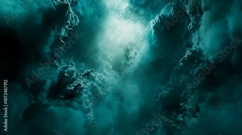 Fototapeta premium A dramatic sky filled with swirling clouds, illuminated by a central light...