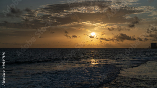 © Thisara, Fototapeta premium A dramatic sunset on the sri lanka with clouds and the sea