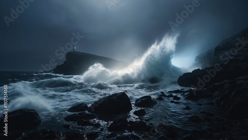 Obraz premium A dramatic view of waves crashing on rocky shores
