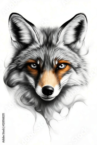 © Digi, Fototapeta premium A drawing of a fox's face on a white background