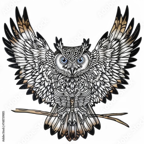 © Friedbert, Obraz premium A drawing of an owl sitting on a branch