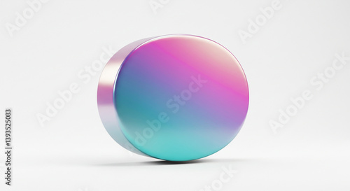 Fototapeta premium A dreamy pastel disc, a vibrant symbol of imagination and creativity, showcasing a smooth gradient from pink to teal against a clean white background.