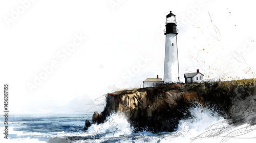 Naklejka premium A Dreamy Sketch of A Lighthouse Standing Tall On A Cli Bbc5d220 6b0d 4524 Abf8 A85a5d93eca7 3