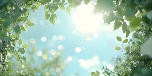 Fototapeta premium A dreamy summer frame of soft greenery blending into a bright sky illuminated...