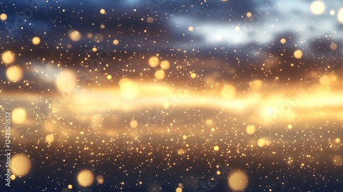© Background, Fototapeta premium A dreamy sunset scene with glowing orbs and a vibrant sky.