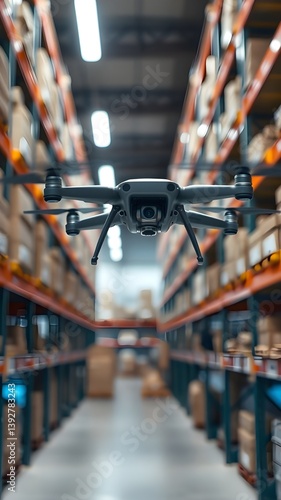 © Dalilah, Obraz premium A drone flying through a warehouse