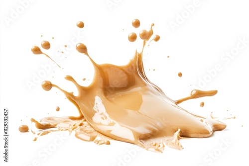 © Alena, Fototapeta premium A drop of liquid falls onto a clean and white surface, creating a small splash