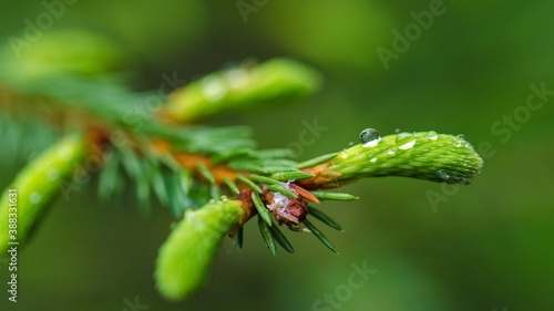 Fototapeta premium A drop of water on a tree sheet close-up