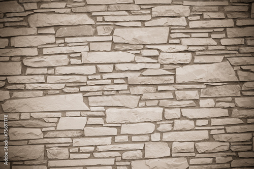 © R_Szatkowski, Obraz premium A dry stone wall made of random grey stone. wall of stones