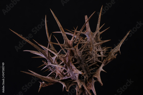 © Leonid, Fototapeta premium A dry thorn on a black background