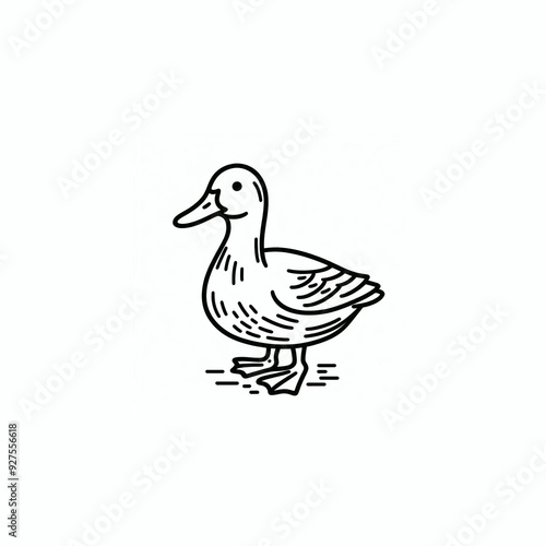 © Lina, Obraz premium A duck drawn with black lines.