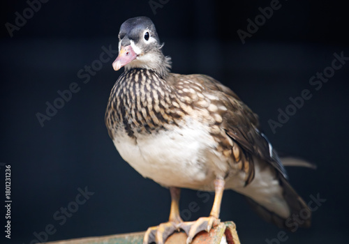 Fototapeta premium A duck is standing on a wooden platform