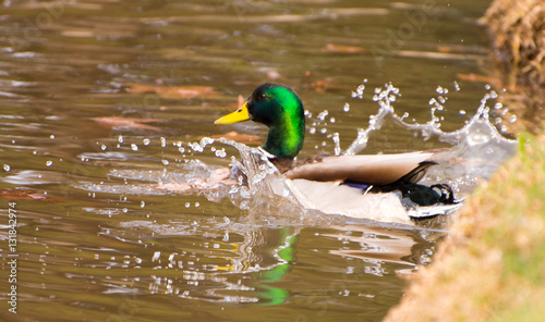 Obraz premium A Duck Landing in a Lake