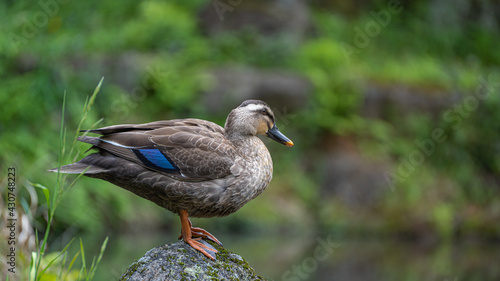 © aomas, Fototapeta premium A duck staring at the pond from the top of the rock