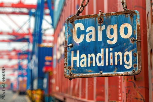 Obraz premium A durable sign displaying "Cargo Handling" located near a bustling warehouse,...