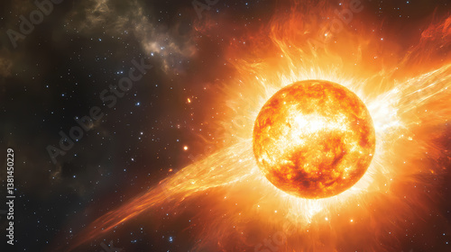 © Thiago, Obraz premium A dying star collapsing into a black hole, then exploding into a new galaxy. Dying Sun. Illustration