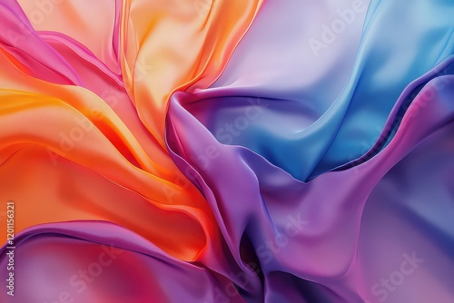 Obraz premium A dynamic abstract composition with layered paint flows in bright colors on a textured fabric-like surface.