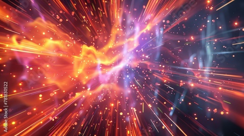© visoot, Fototapeta premium A dynamic abstract space with 3D geometric forms, neon lines and floating elements. Generative AI.
