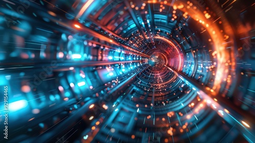 Obraz premium A dynamic abstract tunnel with vibrant blue and orange lights, creating a...